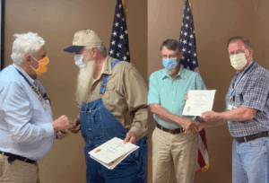 EuGene Smith & President Darrell Over, MD welcoming Steve Frizzell & Brian Abney and to the Bayou Bartholomew Chapter. Welcome aboard Compatriots!