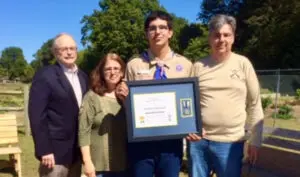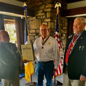 Eagle Scout of the Year, Daniel Patrick Whelan, General Lafayette Chapter, ARSSAR, with Daniel’s parents, Tracy and Kenneth, attending at the site of his Eagle Scout project in Springdale, AR. The framed…